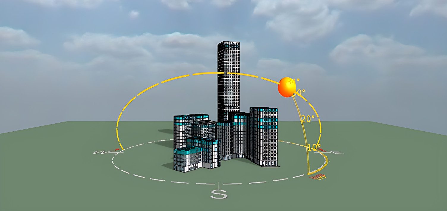 Develop a holistic energy strategy balancing long-term thermal comfort for high-rise residents with environmental impact minimisation, while assessing overshadowing effects on internal spaces and surrounding urban context.